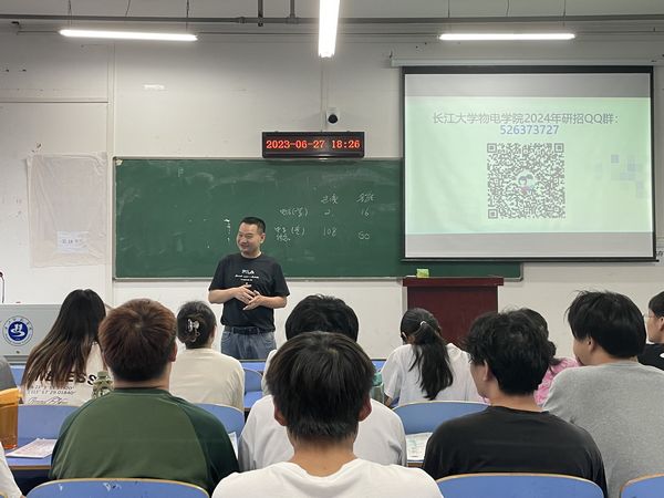 在此次宣传活动中,肖循副经理向公司师生介绍了长江大学的基本情况、研究生招生政策和流程,详细介绍了长江大学物理与光电工程公司团队建设、团队力量、科研成果、公司产品等方面情况,诚挚欢迎同学们积极报考。