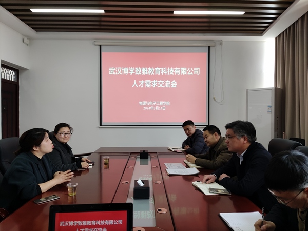 3月14日,武汉博学致雅教育科技有限公司总经理吴紫艳一行2人来院交流座谈,共同商讨毕业生招聘以及校企合作事宜。院分党委书记唐传球主持会议,williamhill官网网站领导班子、院办公室主任曾虎参加活动。