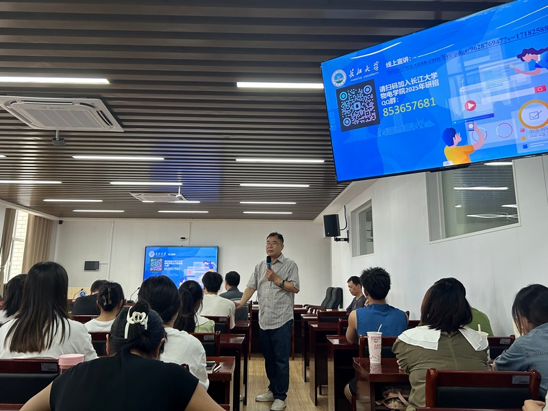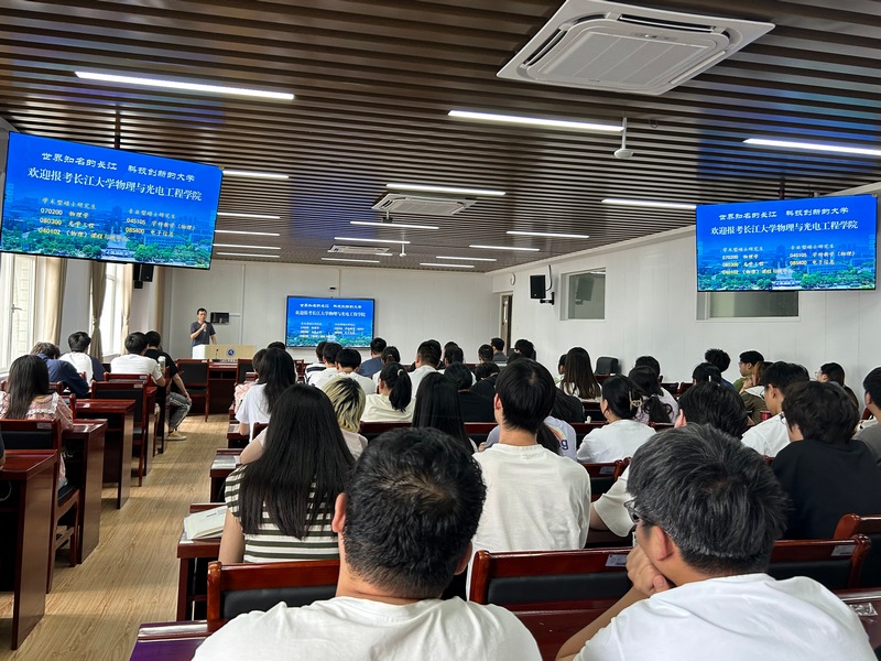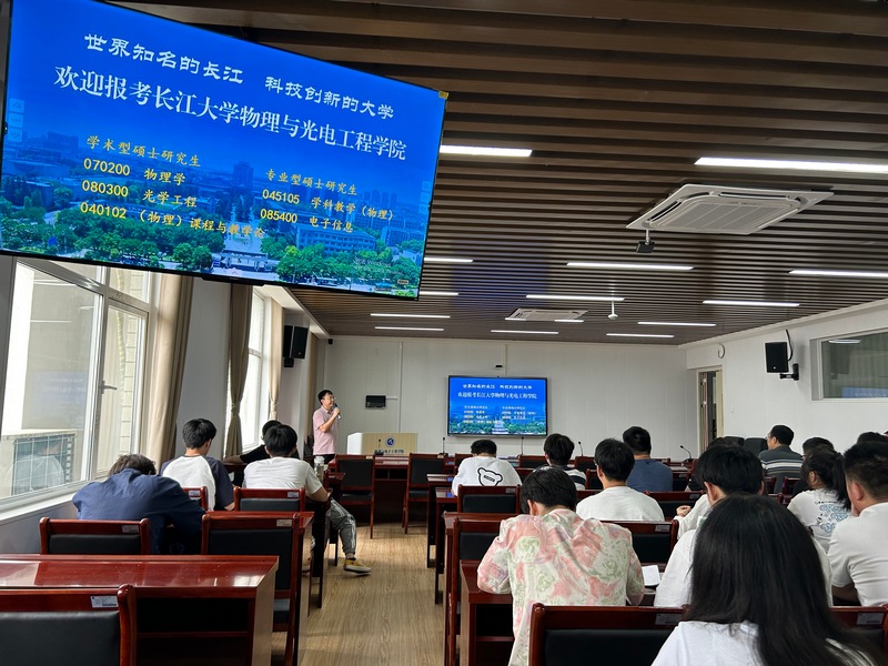 为做好2025届毕业生考研指导工作,6月21日下午,长江大学物理与光电工程公司经理张华峰一行应邀来到公司,开展研究生招生宣讲活动。副经理欧修龙、院办公室主任曾虎、辅导员李朦以及物理学、信息工程专业全体员工参会。