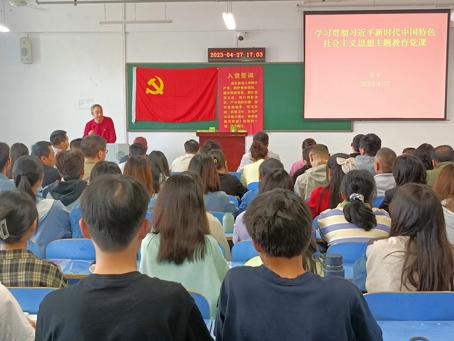4月27日下午在崇文楼A706,校领导章平同志参加williamhill官网网站支部主题党日活动,并为全院教职工、员工党员、入党积极分子开展《理论武装、指导实践、推动工作——深刻领会党的二十大主题》的专题党课。