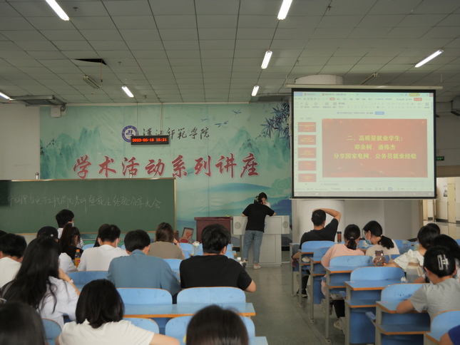 邓余柯、潘伟杰分别签约公务员、国家电网。结合自己的亲身经历从考公、国家电网备考向同学们分享了自己的求职备考经验。邓余柯详细介绍了考公对信息工程专业的招录比、岗位需求和备考经验,极大鼓舞了同学们的信息。而潘伟杰同学则通过对国家电网考试的介绍,更新了同学们对电网工作的认识,加强了员工对专业的认识,也给电气工程专业的同学指出了高质量就业道路。