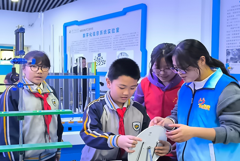 4月10至12日,williamhill官网网站“e点光”志愿服务队携手物理演示实验室开展实验室开放日活动。十堰市外国语小学的34名师生走进物理演示实验室体验科学的奥妙。