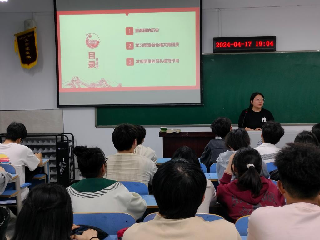 为深入学习贯彻习近平新时代中国特色社会主义思想和党的二十大精神,贯彻落实习近平总书记关于加强新时代团员队伍先进性建设的重要指示,加强入团积极分子培训教育,规范团员发展程序,切实提高发展团员工作质量。4月17日晚,williamhill官网网站分团委在崇文楼A707开展入团积极分子培训,本次培训由分团委负责人李朦主讲,42名入团积极分子参训。